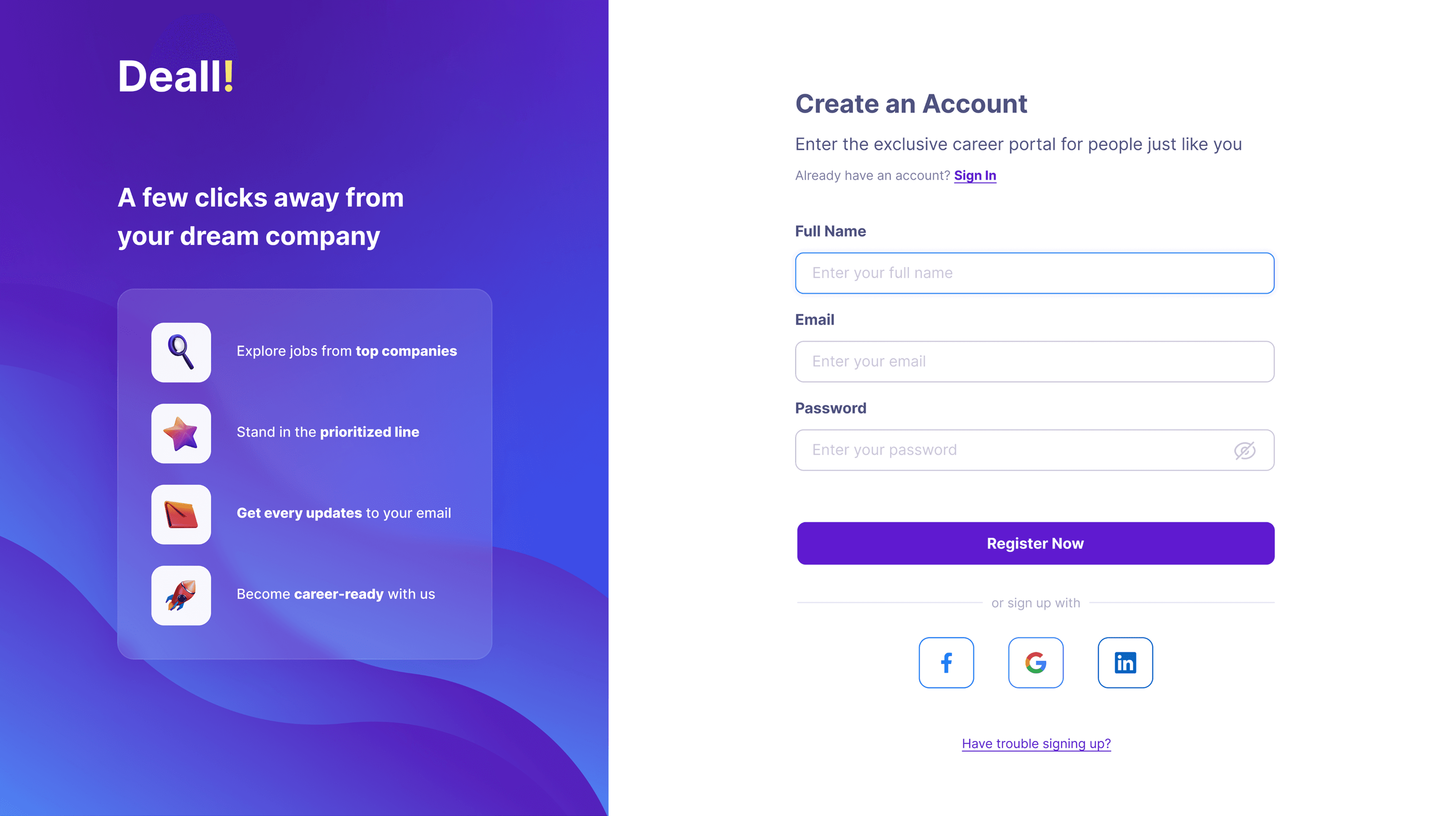 Deall's Sign Up Page