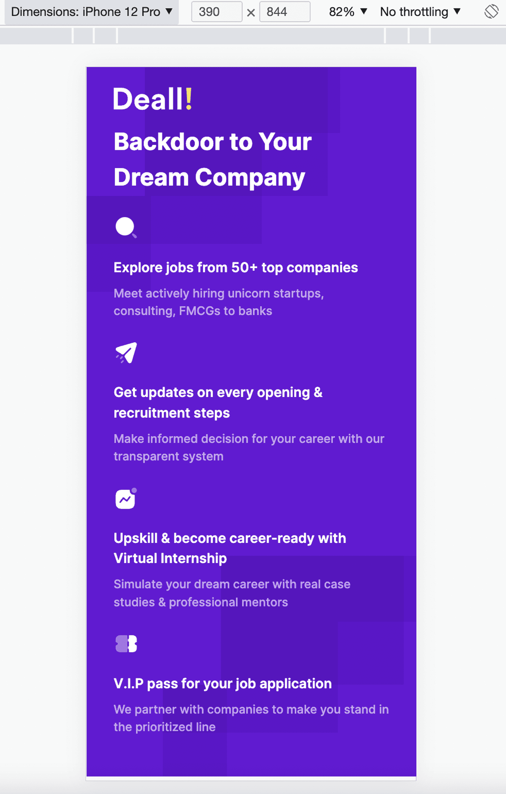 Deall is a career portal connecting top talents with job opportunities. While exploring the platform, I noticed usability issues on its sign-up page that likely contributed to high churn.